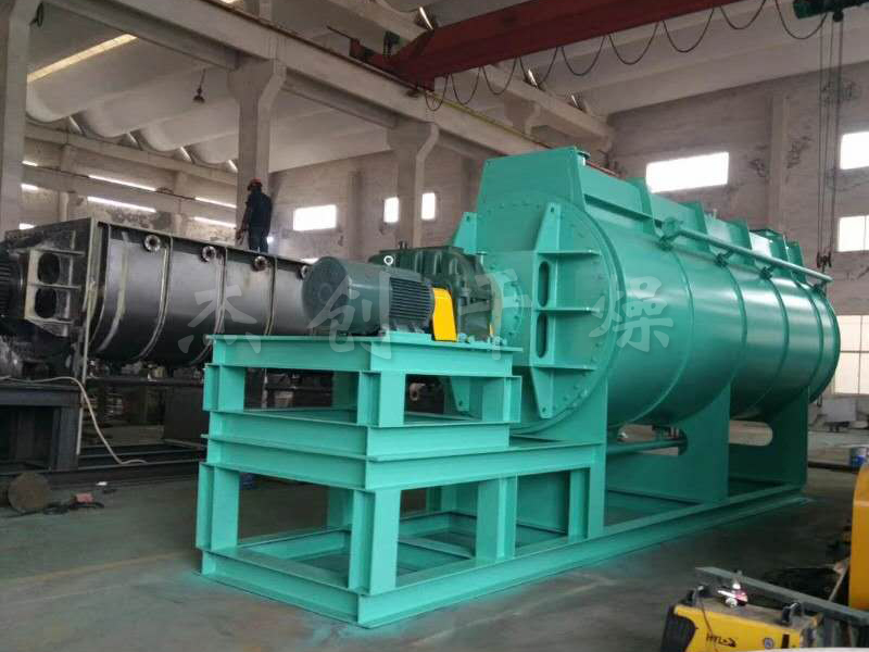 污泥槳葉干燥機(jī)以^快速度使得污泥在干化過程中迅速沖過“膠粘化相區(qū)域”。同時(shí)巧妙的結(jié)構(gòu)使得污泥在干化過程中達(dá)到了雙向剪切狀態(tài)。被干燥的污泥由螺旋送料機(jī)定量地連續(xù)送入干燥機(jī)的加料口,污泥···