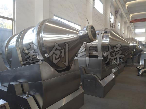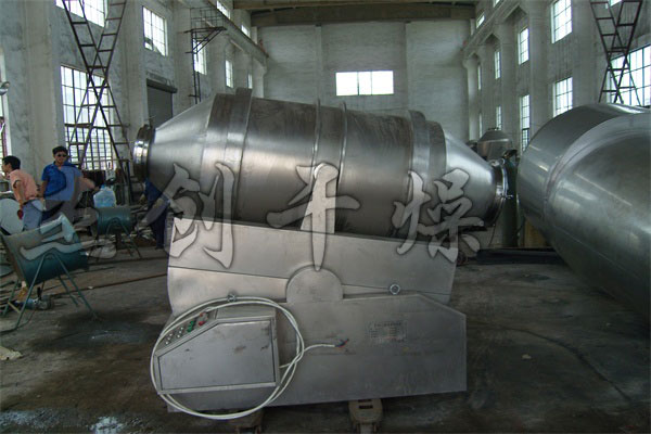 EYH 二維運動混合機(jī)的轉(zhuǎn)筒可同時進(jìn)行二個運動,一個為轉(zhuǎn)筒的轉(zhuǎn)動,另一個為轉(zhuǎn)筒隨擺動架的擺動。被混合物料在轉(zhuǎn)筒內(nèi)隨轉(zhuǎn)筒轉(zhuǎn)動、翻轉(zhuǎn)、混和的同時,又隨轉(zhuǎn)筒的擺動而發(fā)生左右來回的摻混運動,在這兩個運動的共同作用下,物料在短時間內(nèi)得到均勻的混合。EYH二維混料機(jī)適合所有粉、粒狀物料的混合。